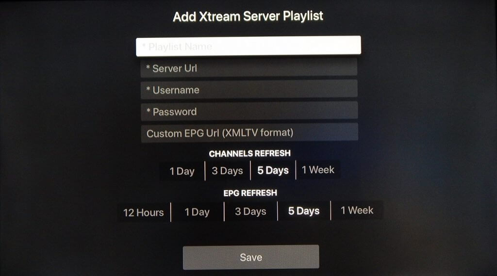 - Server Url: vous devez appliquer le lien de serveur fourni par votre distributeur IPTV